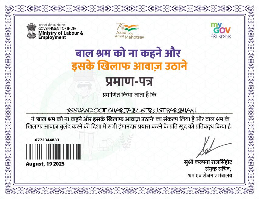 रस्ता सुरक्षा अभियान २०२६ अंतर्गत जनजागृती कार्यक्रम संपन्न : जीवनदूत चॅरिटेबल ट्रस्ट परभणी